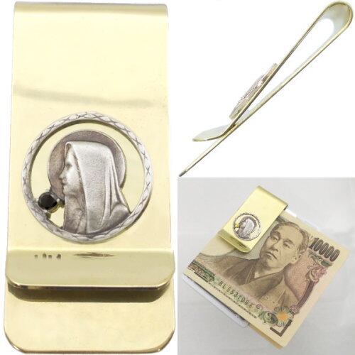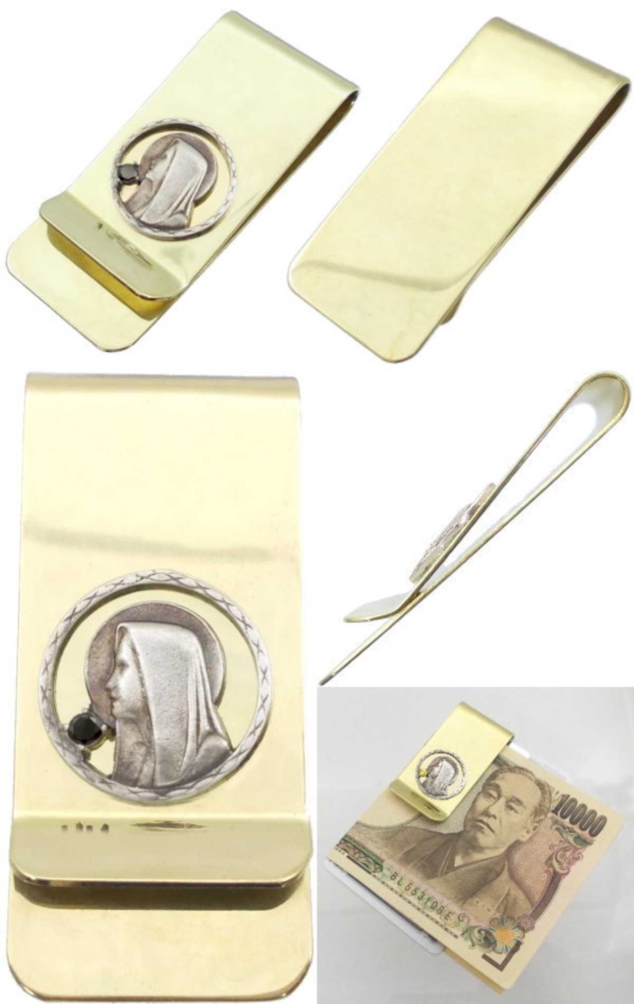 ★シルバーの聖母マリアの穏やかな横顔が神々しいブラスマネークリップ。