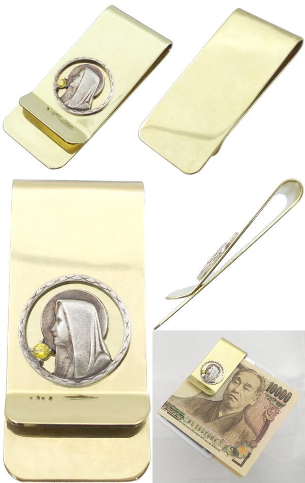 ★シルバーの聖母マリアの穏やかな横顔が神々しいブラスマネークリップ。