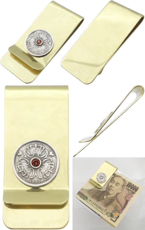 (1月)ガーネット クローネ コインブラスマネークリップ 誕生石*BM-482