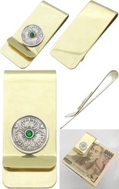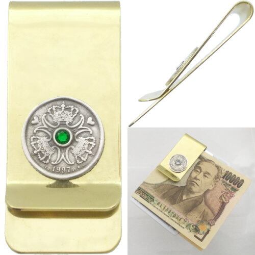 (5月)エメラルドグラス クローネ コインブラスマネークリップ 誕生石*BM-482
