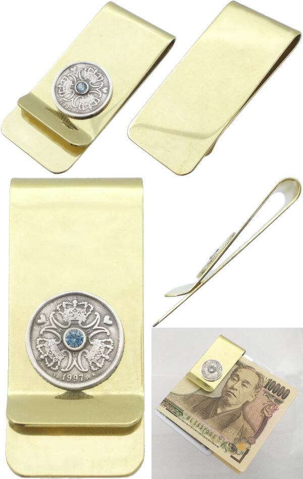 (12月)タンザナイト クローネ コインブラスマネークリップ 誕生石*BM-482