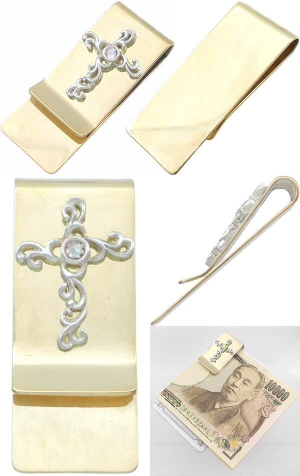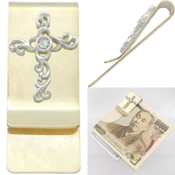★定番のクロスをアラベスクテイストでアレンジしたブラスマネークリップ。