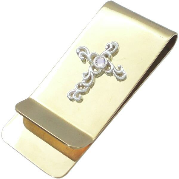 ★定番のクロスをアラベスクテイストでアレンジしたブラスマネークリップ。