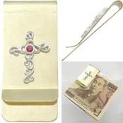★定番のクロスをアラベスクテイストでアレンジしたブラスマネークリップ。