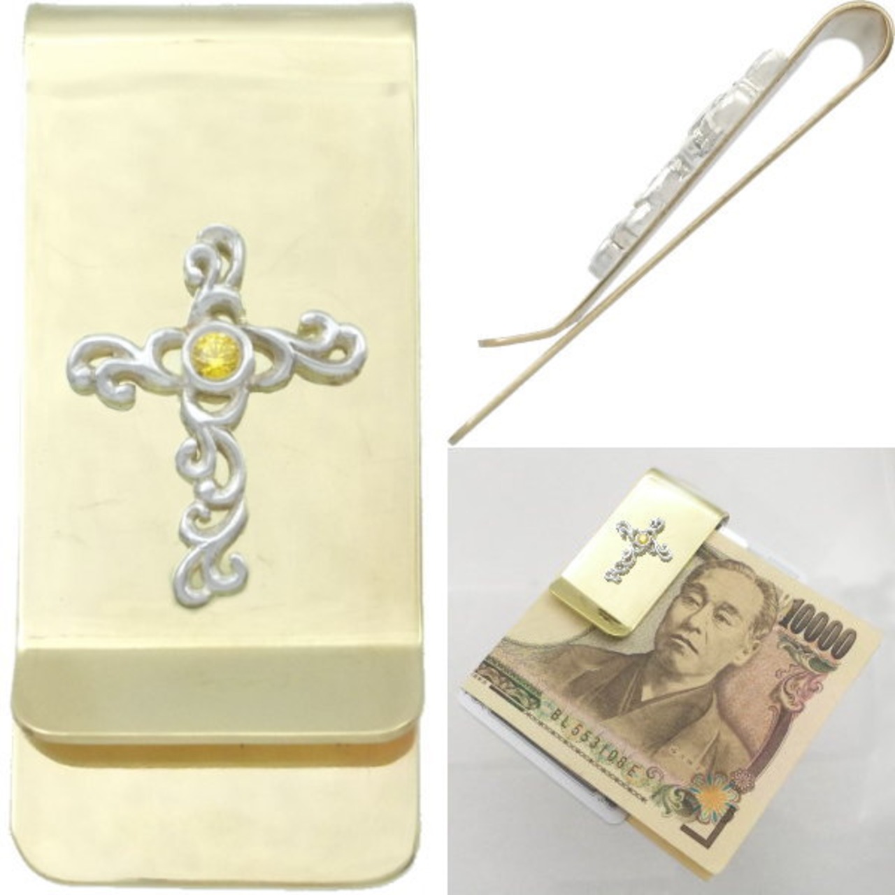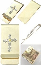★定番のクロスをアラベスクテイストでアレンジしたブラスマネークリップ。