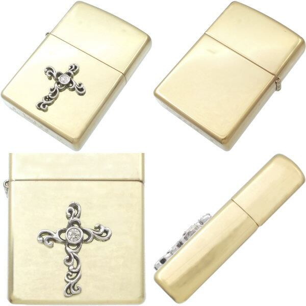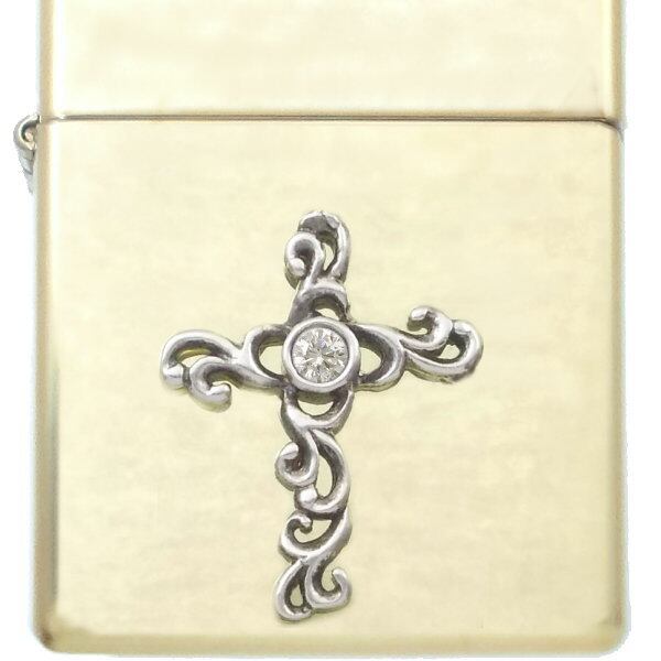 ★シルバーのクロスをアラベスクテイストでアレンジしたブラスボディジッポ。
