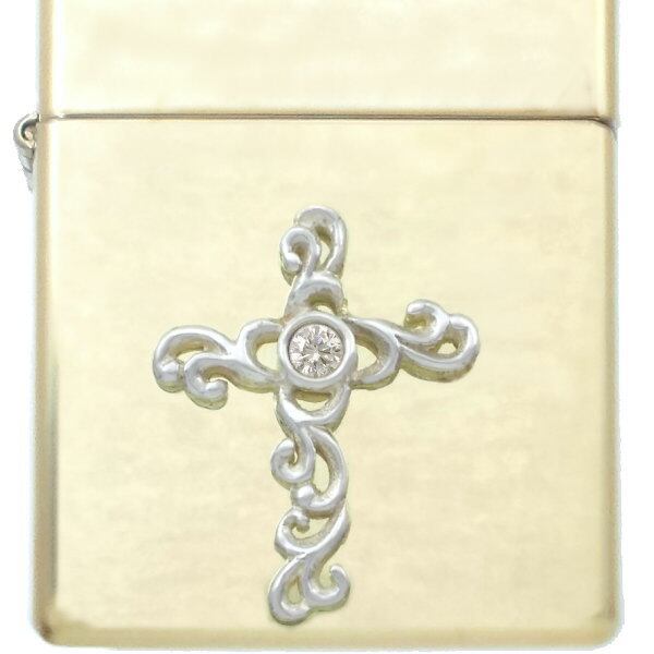 ★シルバーのクロスをアラベスクテイストでアレンジしたブラスボディジッポ。