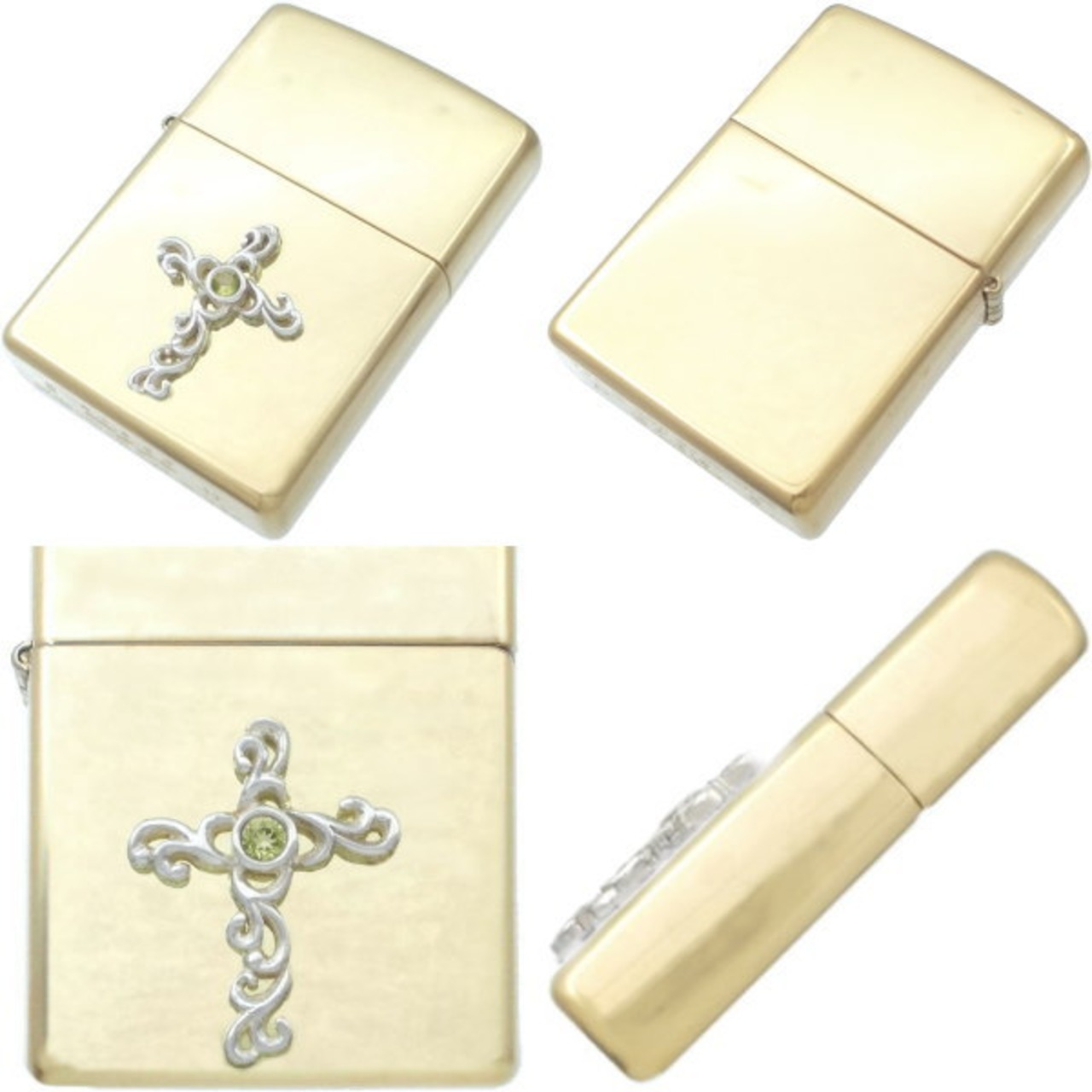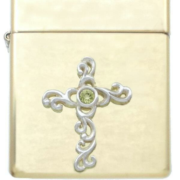 (8月)ペリドット ホワイト アラベスク センター クロス ブラスジッポ 誕生石*BZ-1033