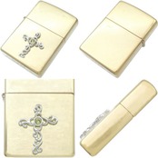 ★シルバーのクロスをアラベスクテイストでアレンジしたブラスボディジッポ。