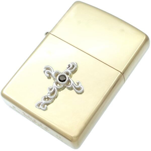ブラックCZ ホワイト アラベスク センター クロス ブラスジッポ△キュービックジルコニア使用*BZ-1033