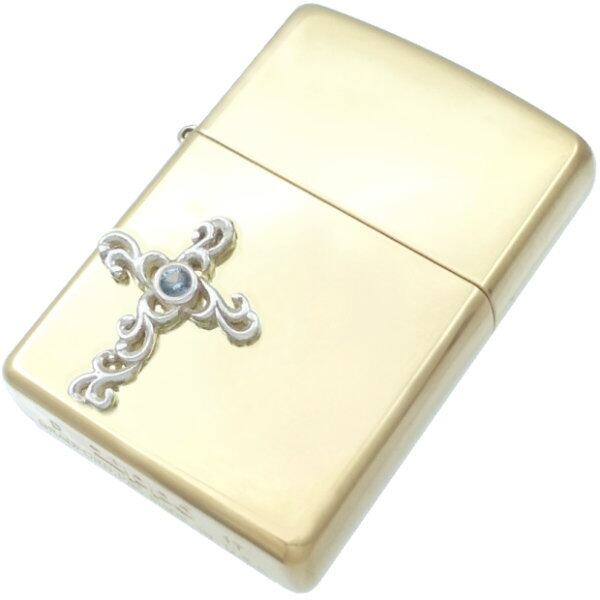 (3月)アクアマリン ホワイト アラベスク クロス ブラスジッポ 誕生石*BZ-1034