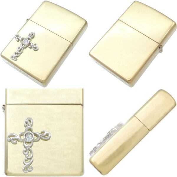 ★シルバーのクロスをアラベスクテイストでアレンジしたブラスボディジッポ。