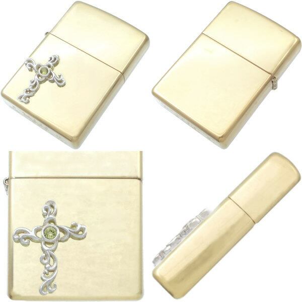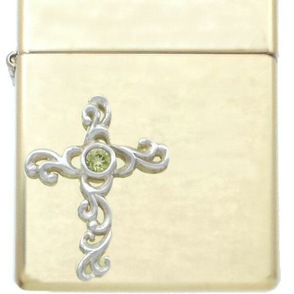 (8月)ペリドット ホワイト アラベスク クロス ブラスジッポ 誕生石*BZ-1034
