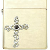 ★シルバーのクロスをアラベスクテイストでアレンジしたブラスボディジッポ。