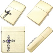★シルバーのクロスをアラベスクテイストでアレンジしたブラスボディジッポ。