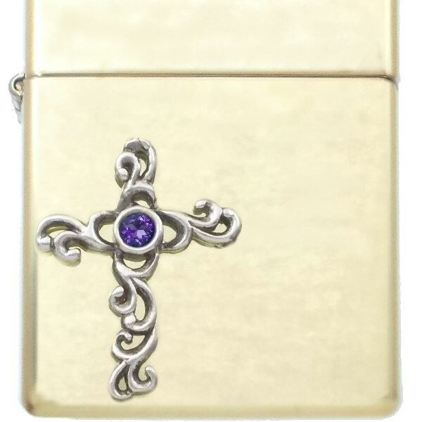 (9月)サファイア ブラック アラベスク クロス ブラスジッポ 誕生石*BZ-1028