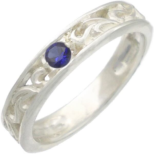 (9月)サファイア ホワイト ラージ スクロール シルバーリング 誕生石*BR-1038