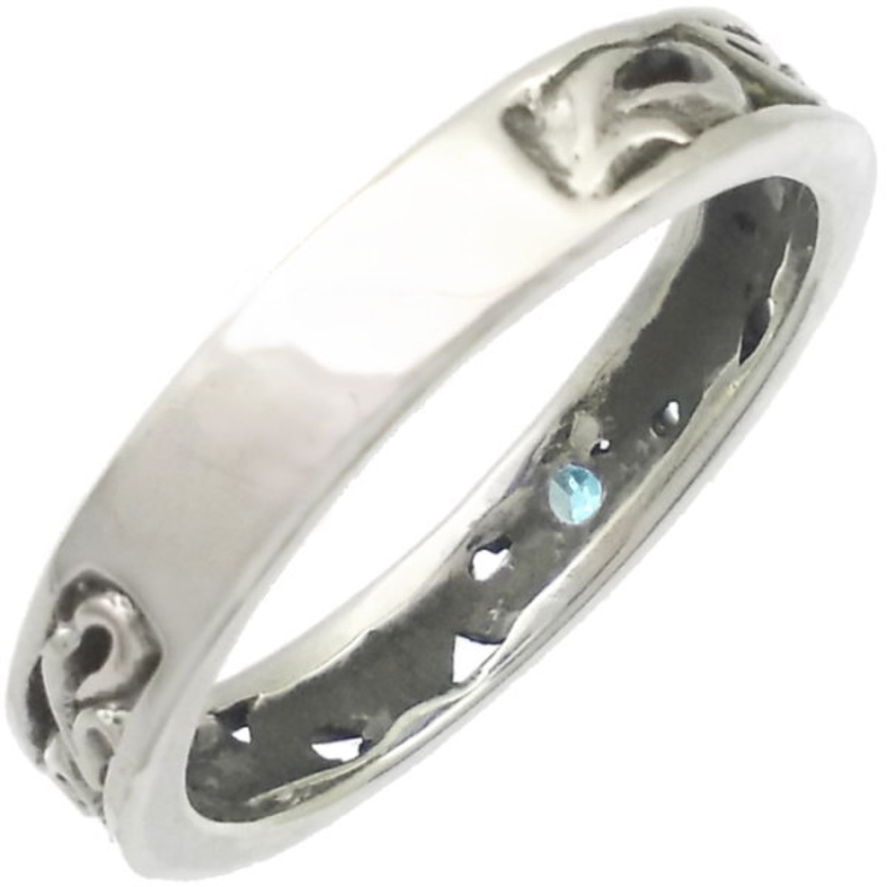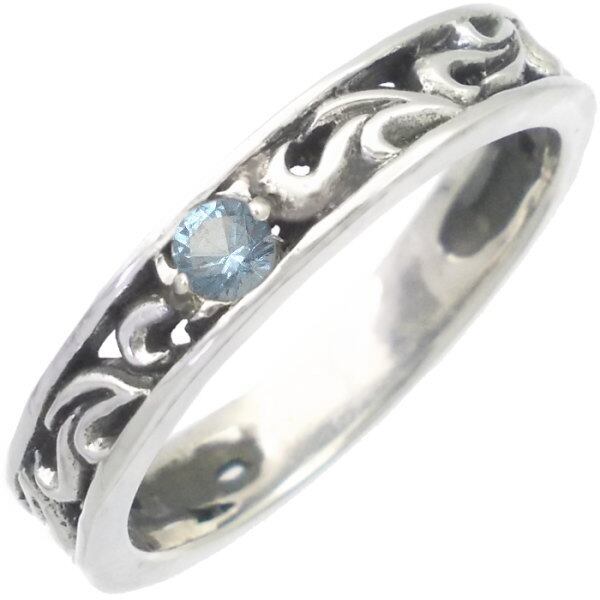 (3月)アクアマリン ブラック ラージ スクロール シルバーリング 誕生石*BR-1039
