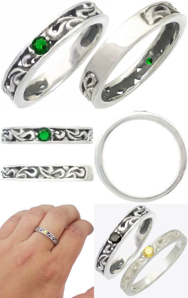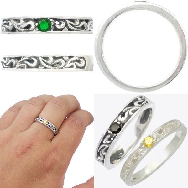 シンプルな唐草デザインに誕生石をセッティングした適度なボリューム感のあるリング。飽きの来ないデザインとホワイトとブラックの仕上げで変わるイメージにも注目。スモールタイプより石との一体感がありシックなイメージ。