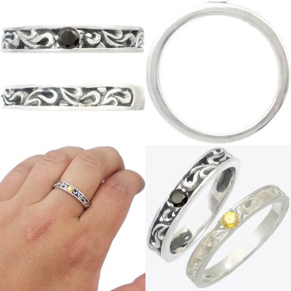 シンプルな唐草デザインに誕生石をセッティングした適度なボリューム感のあるリング。飽きの来ないデザインとホワイトとブラックの仕上げで変わるイメージにも注目。スモールタイプより石との一体感がありシックなイメージ。