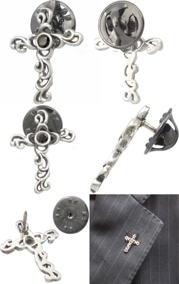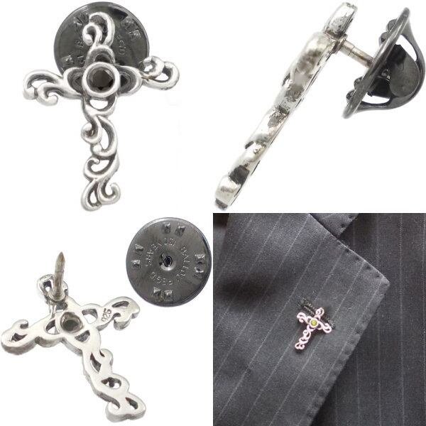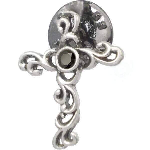 ブラックCZ ブラック アラベスク クロス シルバー ピンバッジ ピンズ△キュービックジルコニア使用*BK-1089