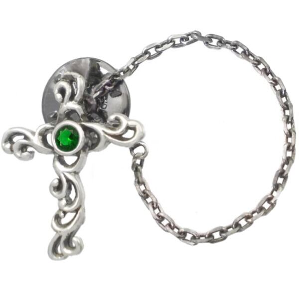 (5月)エメラルドグラス ブラック アラベスク クロス チェーン シルバー ピンバッジ ピンズ 誕生石*BK-1091