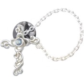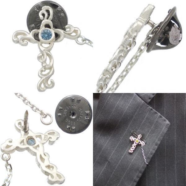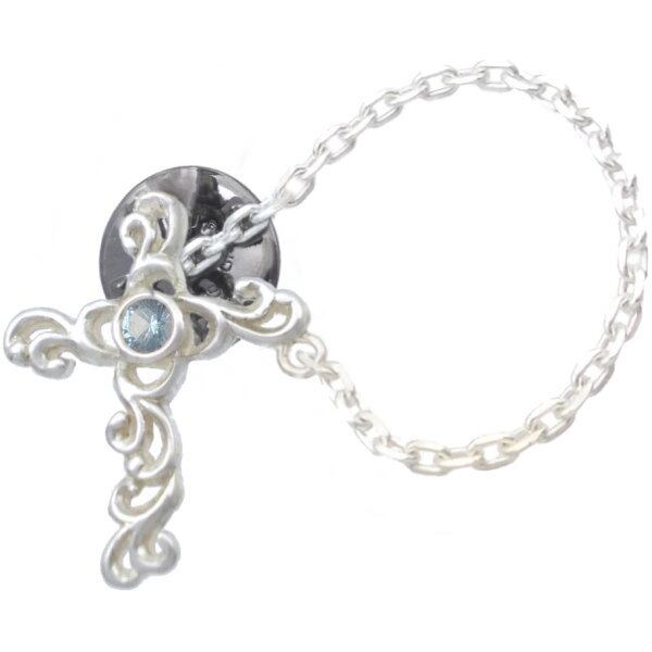 (3月)アクアマリン ホワイト アラベスク クロス チェーン シルバー ピンバッジ ピンズ 誕生石*BK-1092