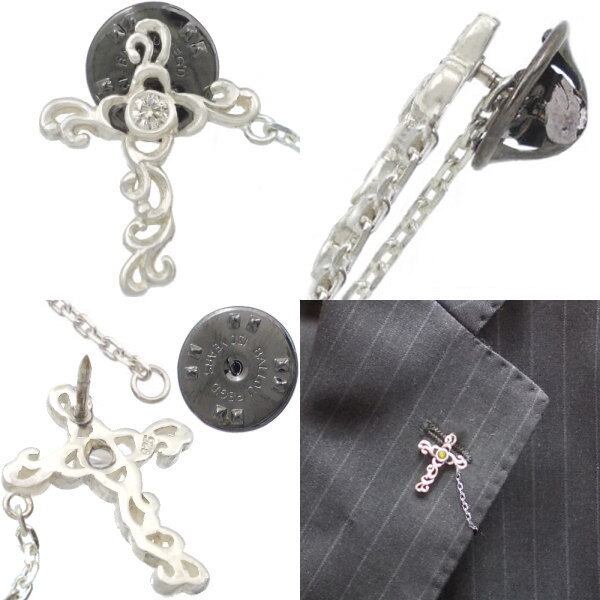 (4月)ジルコニア ホワイト アラベスク クロス チェーン シルバー ピンバッジ ピンズ 誕生石*BK-1092
