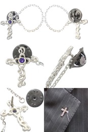 (9月)サファイア ホワイト アラベスク クロス チェーン シルバー ピンバッジ ピンズ 誕生石*BK-1092