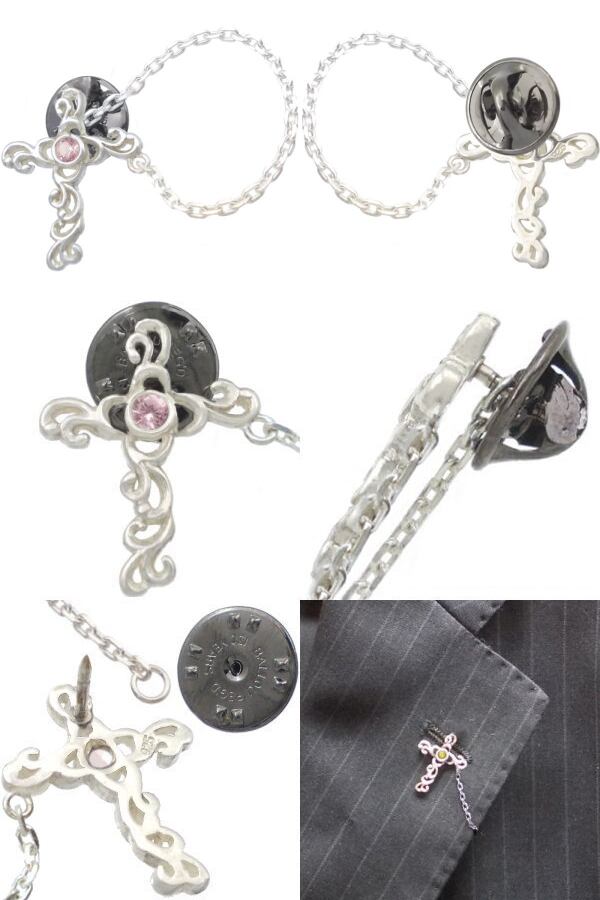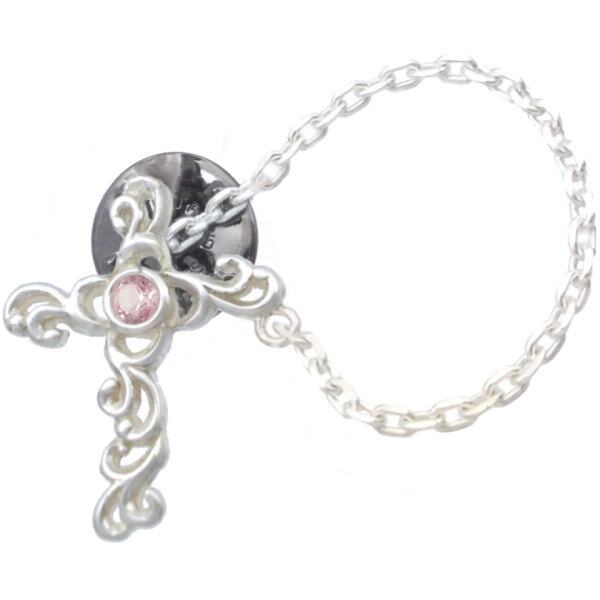 (10月)ピンクトルマリン ホワイト アラベスク クロス チェーン シルバー ピンバッジ ピンズ 誕生石*BK-1092