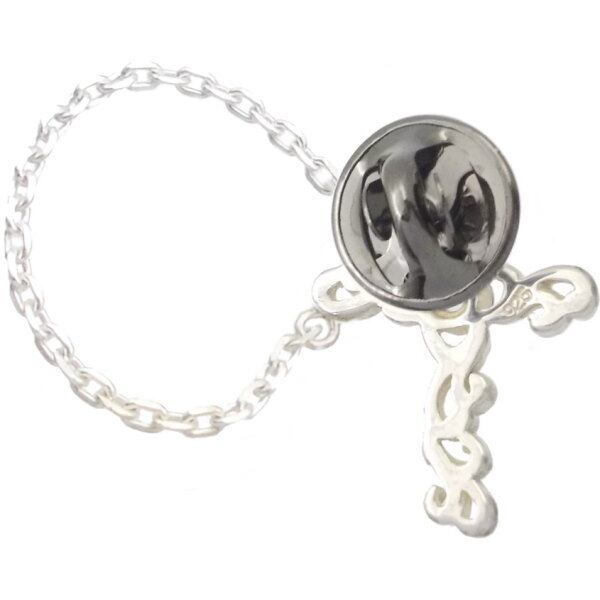 (11月)ブルートパーズ ホワイト アラベスク クロス チェーン シルバー ピンバッジ ピンズ 誕生石*BK-1092