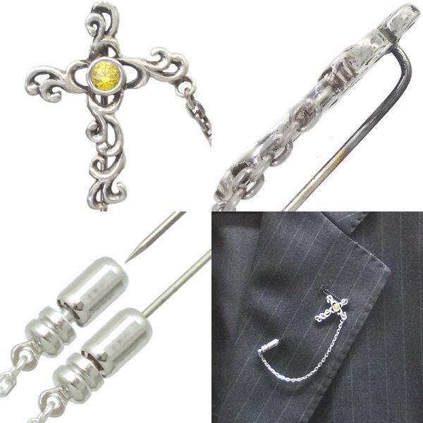 イエローC Z ブラック アラベスク クロス チェーン シルバー ラペルピン*BK-1095
