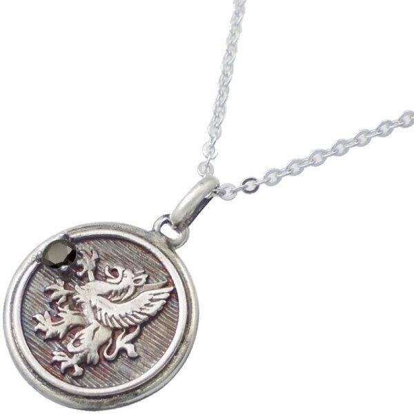 ブラックCZ ブラック グリフォン メダル シルバーペンダントネックレス△キュービックジルコニア使用*BP-1045