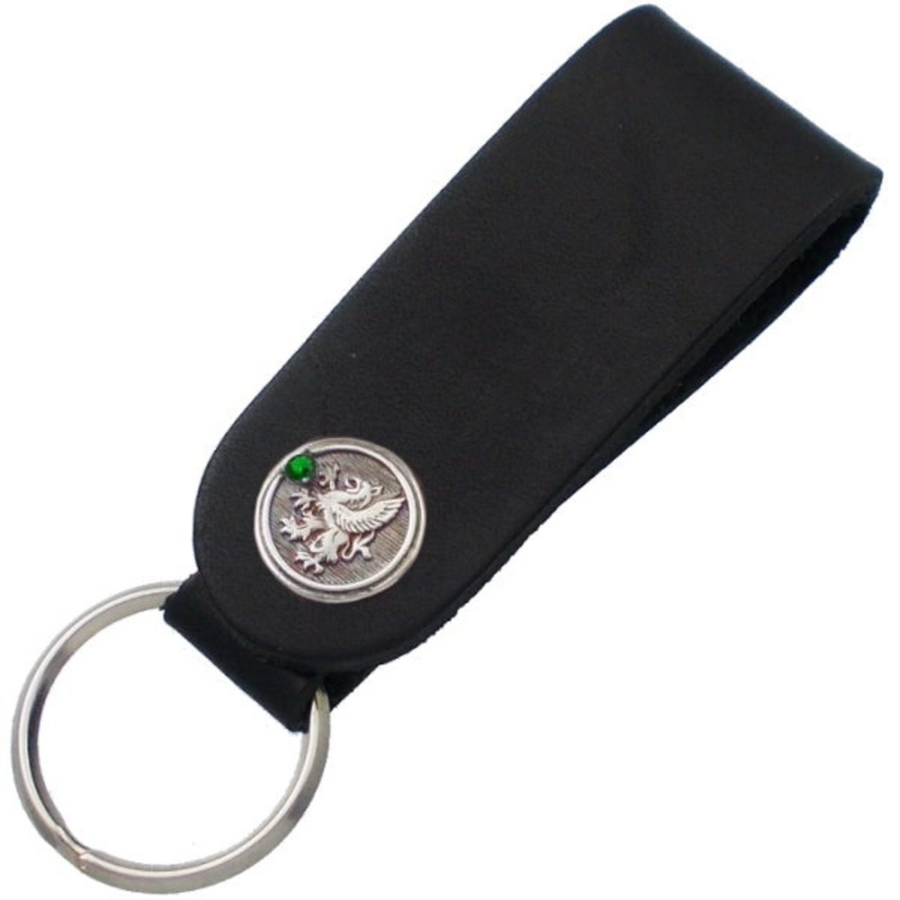 (5月)エメラルドグラス グリフォン メダル ブラックレザー キーホルダー 誕生石*BH-006