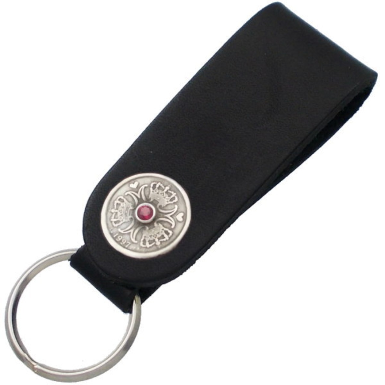 (7月)ルビー クローネ コイン ブラックレザー キーホルダー 誕生石*BH-007