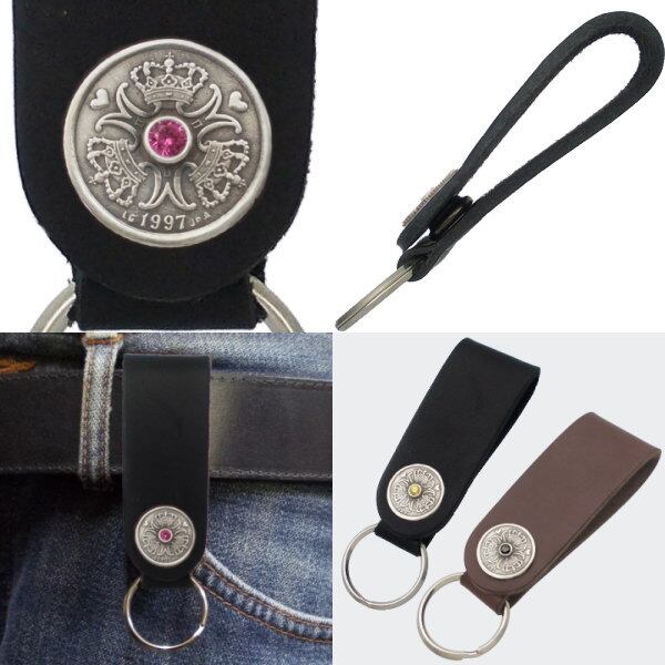 誕生石が選べるのはモチロンのことブラック、イエローのジルコニアも選べシルバーの燻しとレザーのブラックとのコンビで年齢を選ばずお勧めできるスタンダードなキーホルダーとして日常使いにオススメです。