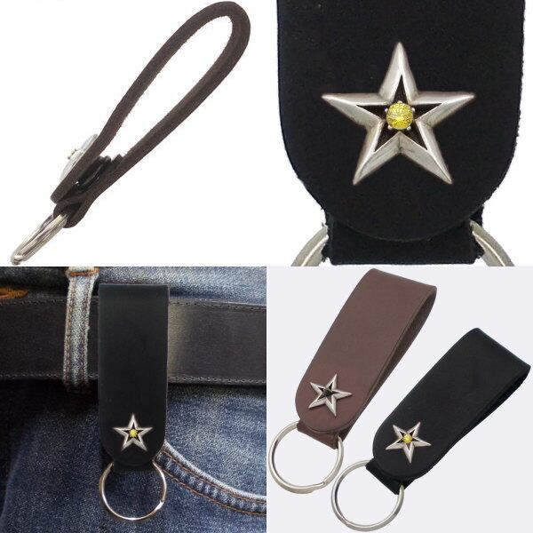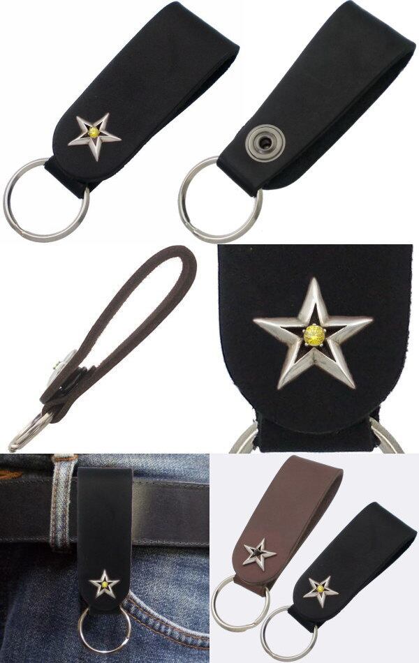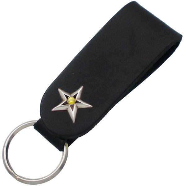 ★存在感たっぷりのスターモチーフと誕生石のレザーキーホルダー。