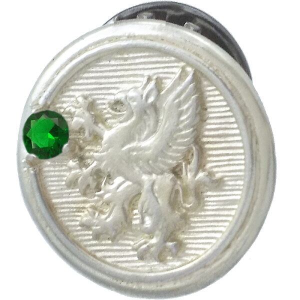 (5月)エメラルドグラス ホワイト グリフォン メダル シルバー ピンバッジ ピンズ 誕生石*BK-1098