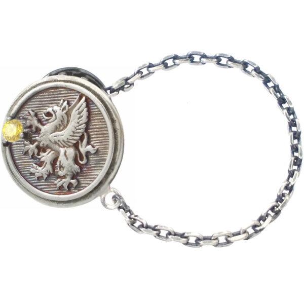 イエローC Z ブラック グリフォン メダル チェーン シルバー ピンバッジ ピンズ*BK-1099