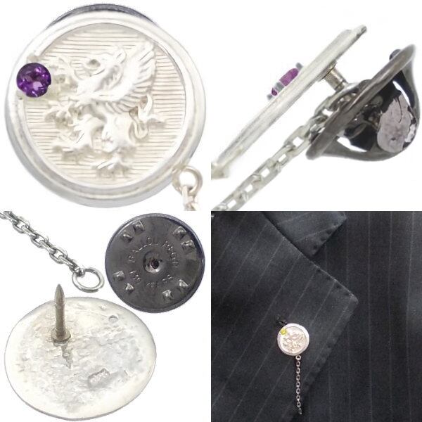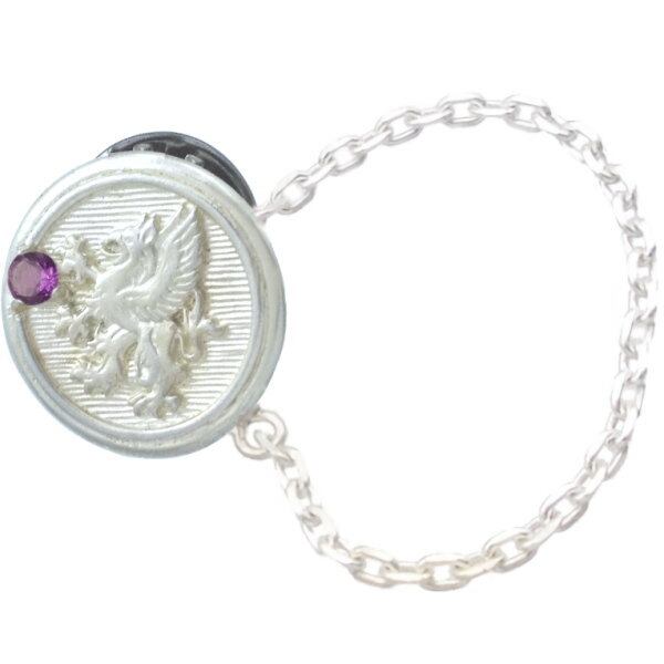 (2月)アメジスト ホワイト グリフォン メダル チェーン シルバー ピンバッジ ピンズ 誕生石*BK-1100
