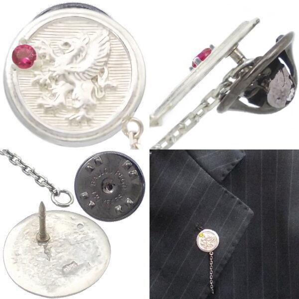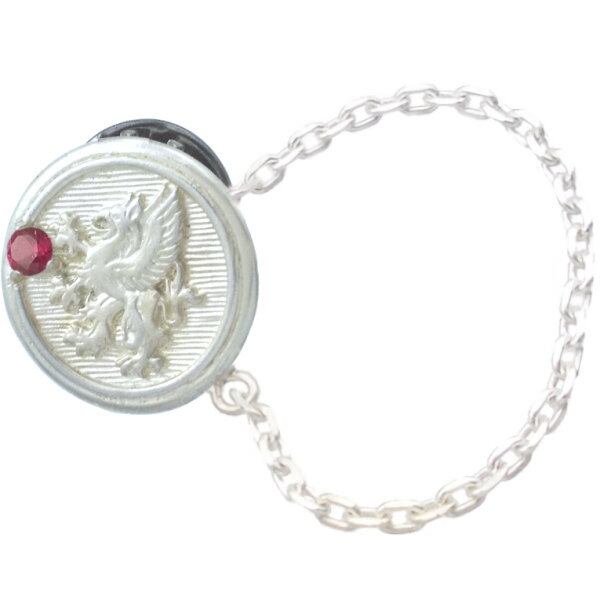 (7月)ルビー ホワイト グリフォン メダル チェーン シルバー ピンバッジ ピンズ 誕生石*BK-1100