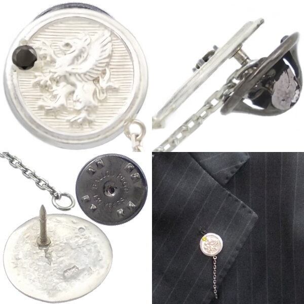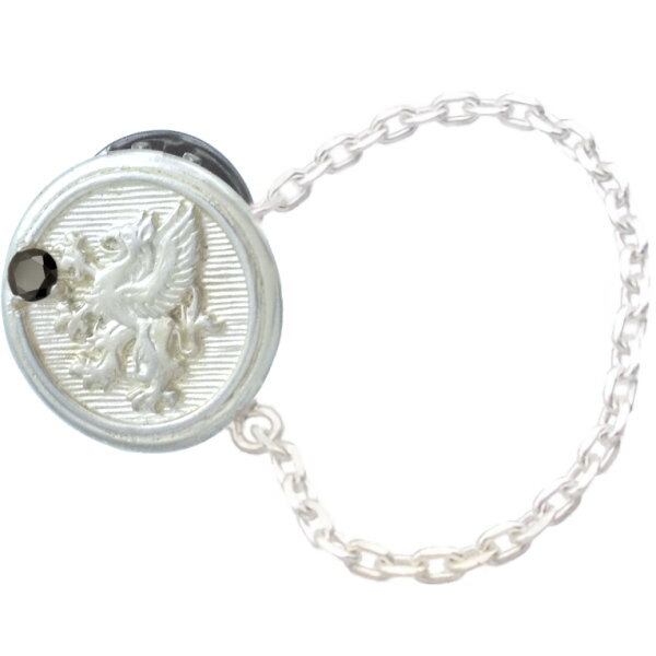 ブラックCZ ホワイト グリフォン メダル チェーン シルバー ピンバッジ ピンズ*BK-1100