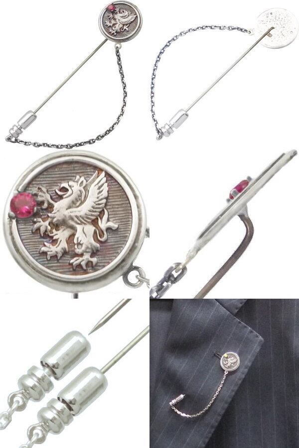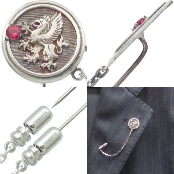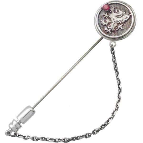 (7月)ルビー ブラック グリフォン メダル チェーン シルバー ラペルピン 誕生石*BK-1200