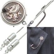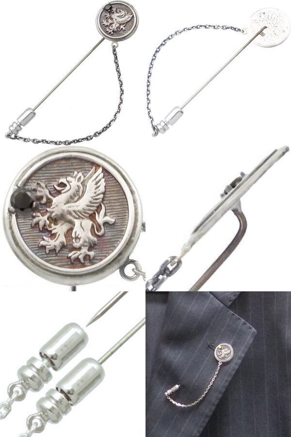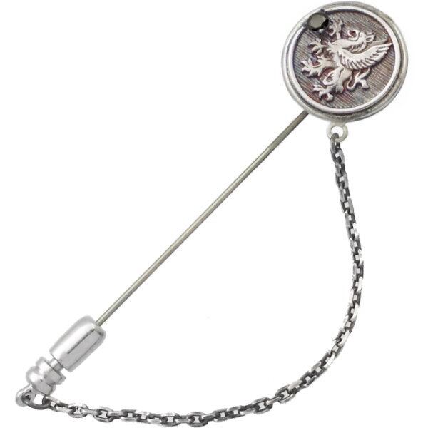 ブラックCZ ブラック グリフォン メダル チェーン シルバー ラペルピン*BK-1200