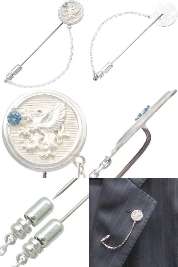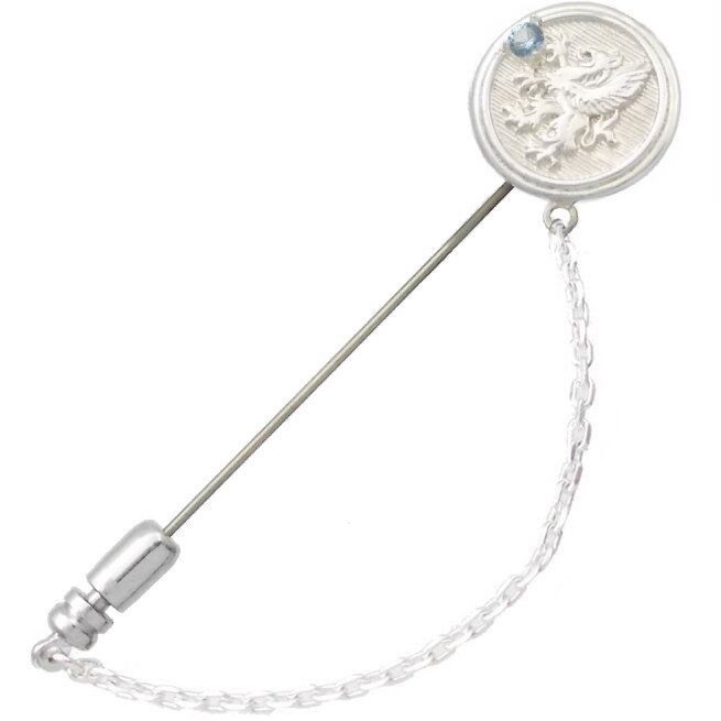 (3月)アクアマリン ホワイト グリフォン メダル チェーン シルバー ラペルピン 誕生石*BK-1201