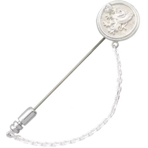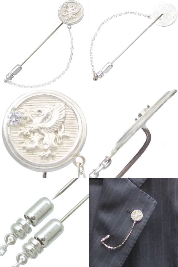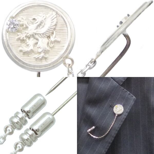 (4月)ジルコニア ホワイト グリフォン メダル チェーン シルバー ラペルピン 誕生石*BK-1201
