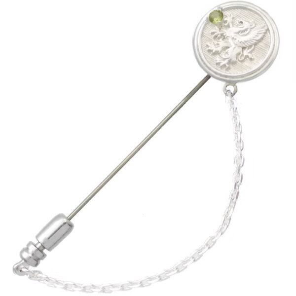 (8月)ペリドット ホワイト グリフォン メダル チェーン シルバー ラペルピン 誕生石*BK-1201