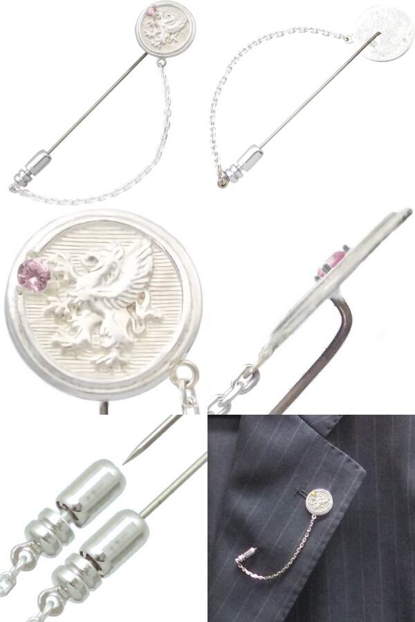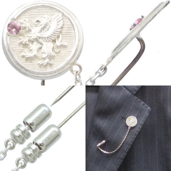 (10月)ピンクトルマリン ホワイト グリフォン メダル チェーン シルバー ラペルピン 誕生石*BK-1201