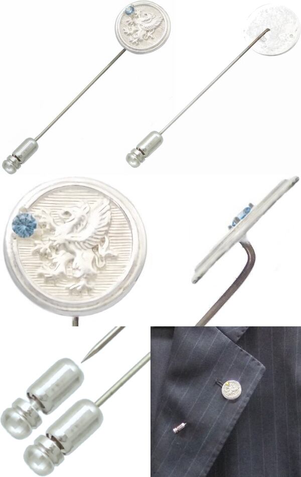 (12月)タンザナイト ホワイト グリフォン メダル シルバー ラペルピン 誕生石*BK-1203