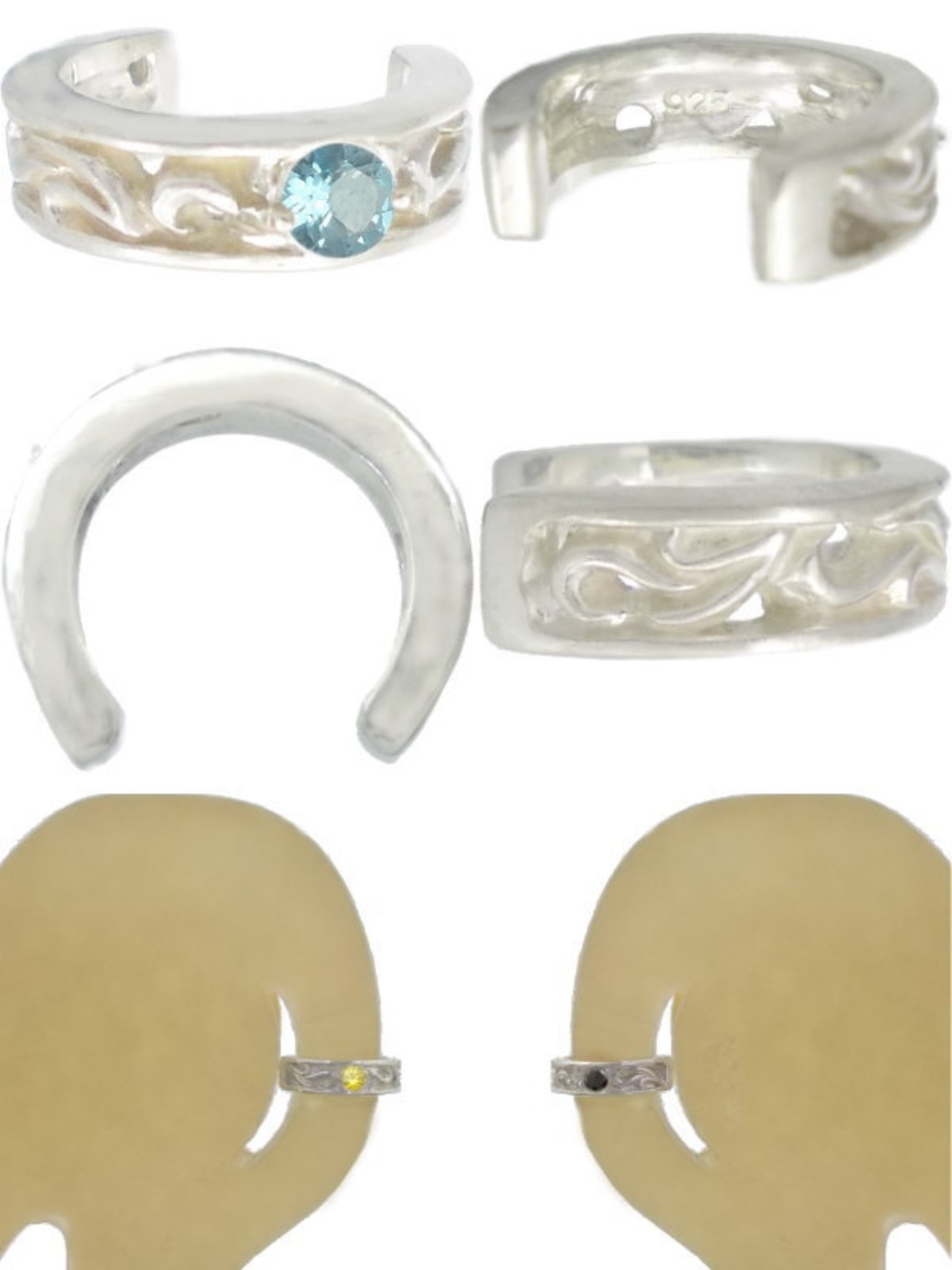 (11月)ブルートパーズ ホワイト バンド スクロール シルバーイヤーカフス イヤーカフ 誕生石*BE-1030